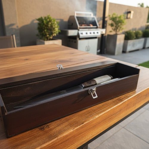 El estuche personalizado no solo protege tus utensilios, sino que también añade un toque distintivo a tu experiencia de parrilla. Ideal para quienes valoran la presentación y la practicidad, este producto es perfecto para regalar o para disfrutar en tus reuniones familiares y con amigos.