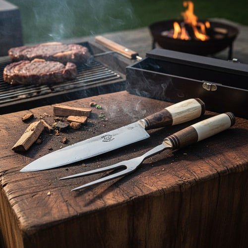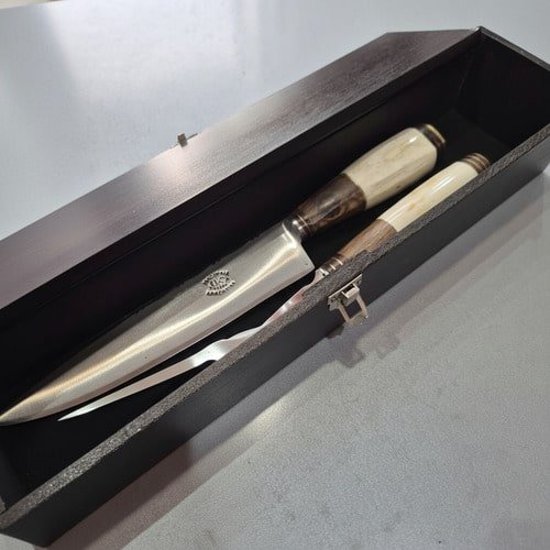 Descubre la elegancia y funcionalidad del juego trinchar parrillero combinado de Printel, diseñado para los amantes de la parrilla que buscan calidad y estilo en cada asado. Este conjunto incluye tres herramientas esenciales, elaboradas con materiales de primera: un cuchillo de acero de alta resistencia y mangos de madera y hueso que garantizan un agarre cómodo y seguro.